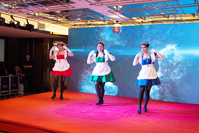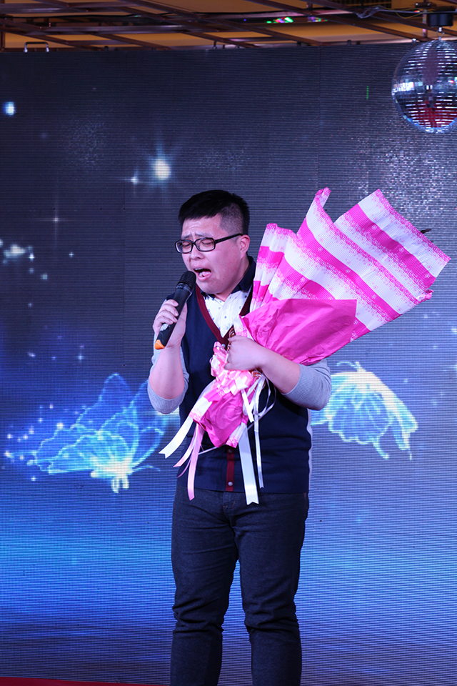 第二環(huán)節(jié)是生產(chǎn)制造部林秋楓的脫口秀《生活真煩惱》,搖身一變知心大姐和我們嘮嘮家長里短生活煩惱,最后一曲《社會搖》結(jié)束了“生活的煩惱”。不得不佩服林姐的好口才??!今年晚會節(jié)目的“亮眼之作”小品《綁匪》,真是讓人眼前一片那啥?。ù颂幨÷圆徽f)。營銷部的賈殿鵬和市場部的王元峰為了節(jié)目也是蠻拼的啦。賈經(jīng)理那一頭金色長發(fā)、和王經(jīng)理那喜慶的肚兜兒,相信大家還是記憶猶新吧!集驚悚、懸疑、搞笑于一身的小品過后,在工程技術(shù)部夏寰宇的一首《你是我的眼》的歌聲中節(jié)目告一段落。之后游戲《看數(shù)字猜成語》、《背連背,心連心》火熱進行。同時由領(lǐng)導(dǎo)抽取幸運二等獎并頒發(fā)獎項。